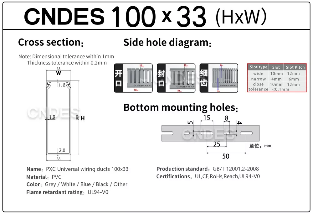 Manajemen Kabel Rak Server 100×33 Berkualitas kami terbuat dari bahan PVC tahan api UL94-V0, mematuhi standar internasional seperti RoHS, REACH, CE, UL, dan ISO, memastikan ketahanan api yang unggul, daya tahan, dan keselamatan operasional jangka panjang.