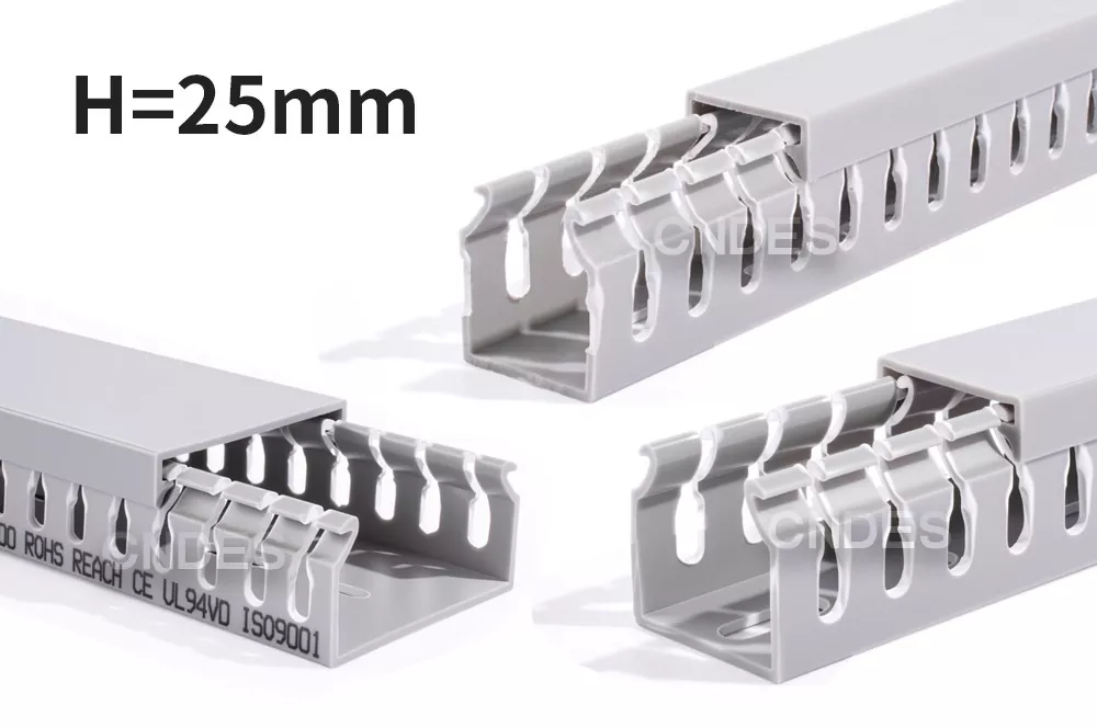 Produk ini adalah saluran kabel PVC berlubang rendah yang dirancang untuk mengatur, melindungi, dan memandu kabel listrik di dalam panel kontrol. Ketinggian 25mm memungkinkannya dipasang: