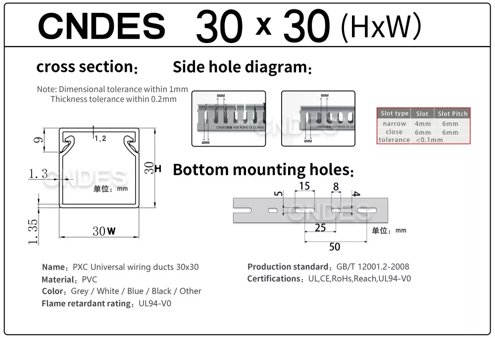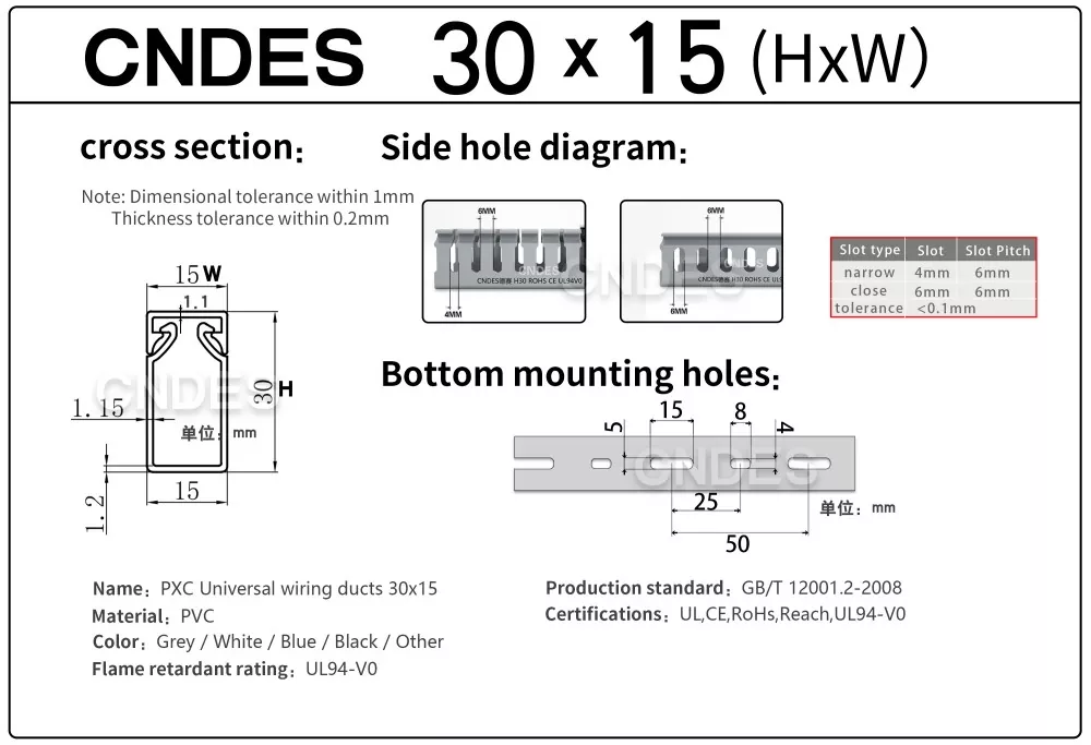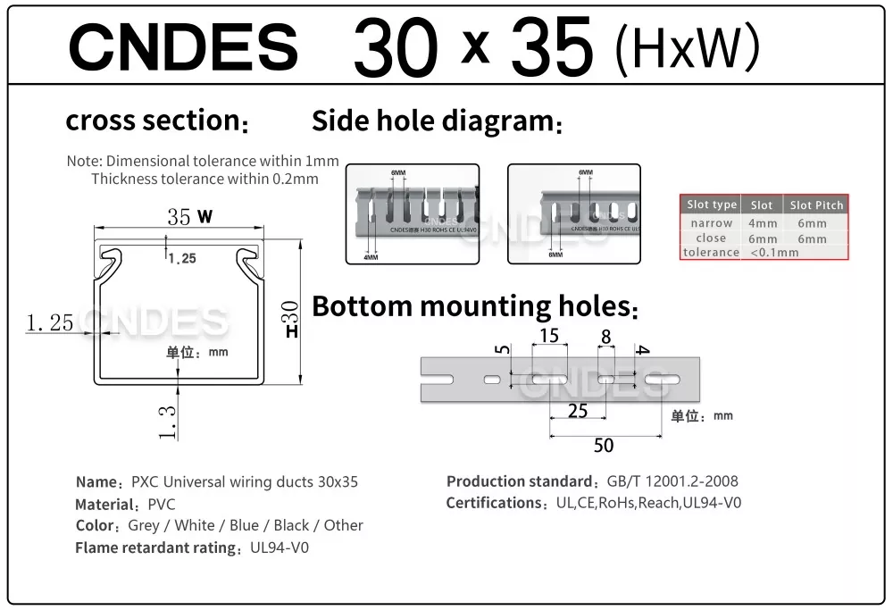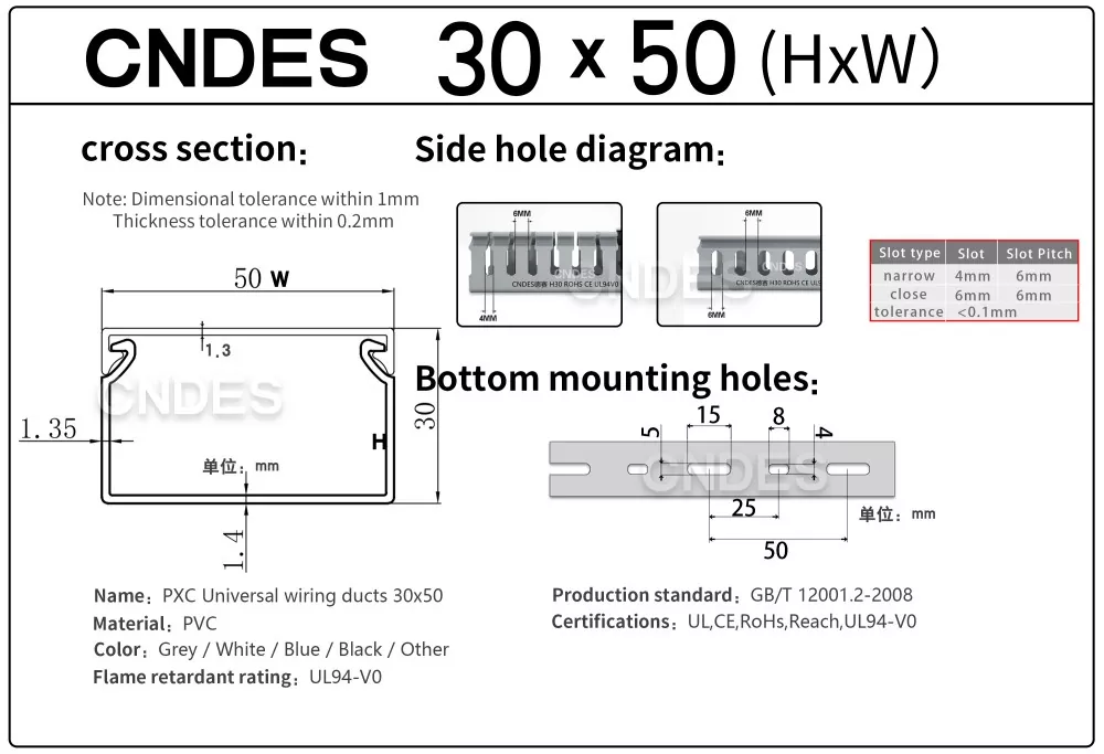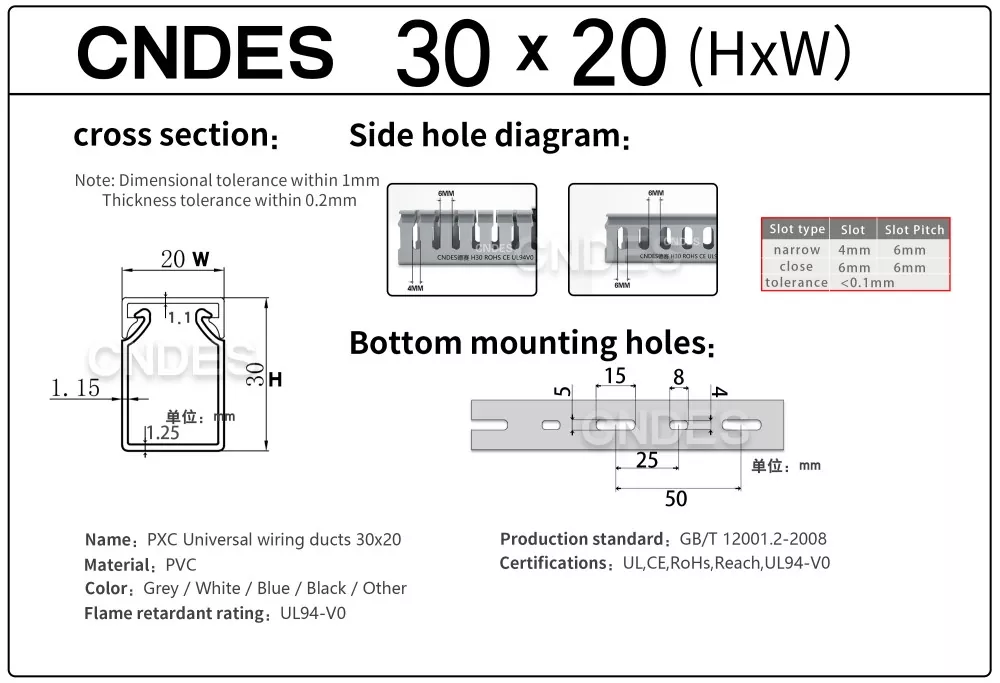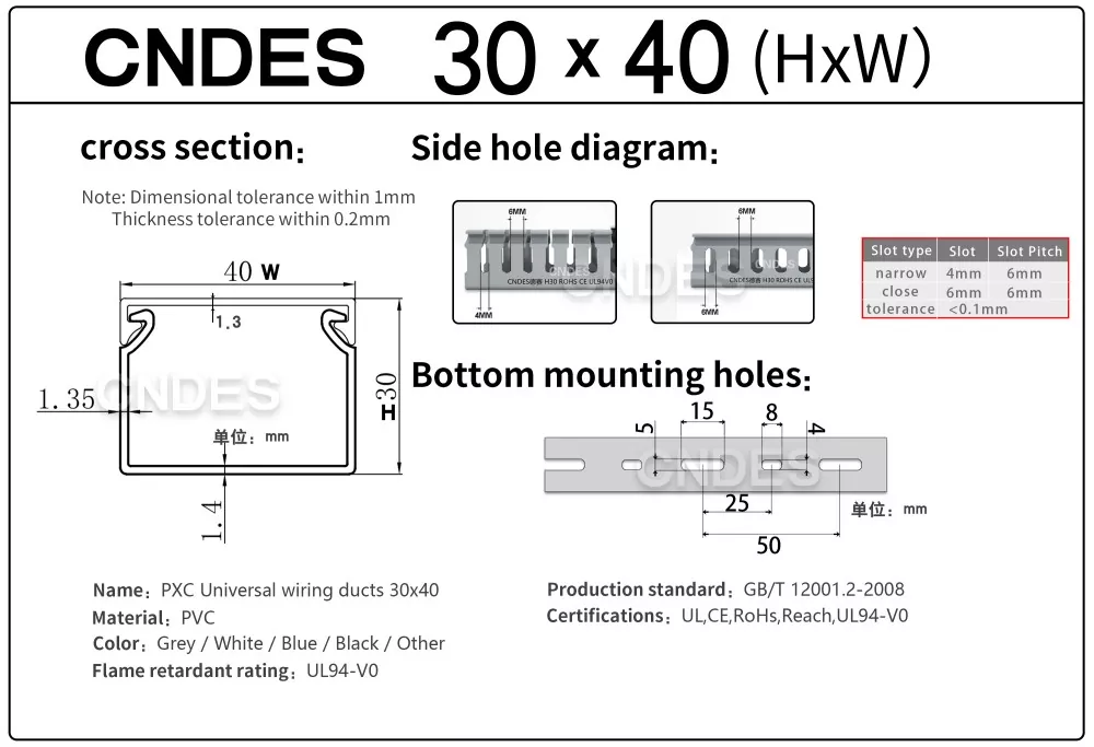 Saluran Manajemen Kabel PVC Berlubang Tinggi 30mm yang Disesuaikan dari CNDES dirancang untuk perutean kabel yang efisien, kompak, dan aman di berbagai lingkungan industri, komersial, dan perumahan. Ideal untuk aplikasi dengan keterbatasan ruang sempit, saluran ini memastikan kabel Anda terorganisir, terlindungi, dan mudah diakses.