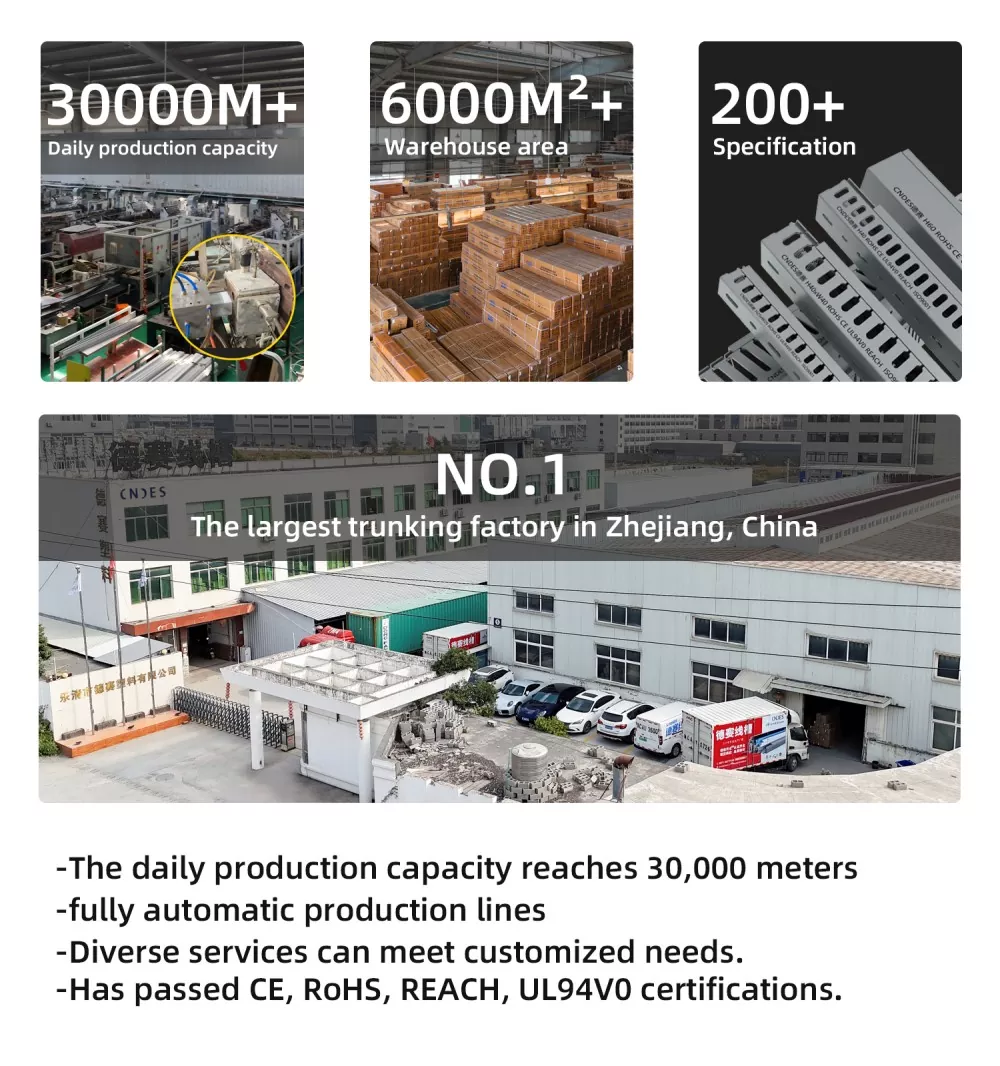 Sebagai produsen saluran kabel PVC profesional, CNDES memiliki pasokan yang stabil dengan 13 jalur produksi, output harian hingga 30.000 meter, dan inventaris gudang seluas 6.000 meter persegi dengan lebih dari 200 spesifikasi. Sistem pemeriksaan kualitas kami mengontrol produk secara ketat: mulai dari penyaringan bahan mentah dan pemantauan produksi waktu nyata hingga pengambilan sampel batch akhir, memastikan bahwa tingkat cacat pabrik pada produk di bawah 0,5% dan selalu dapat diandalkan.