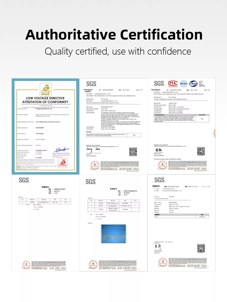 Produk saluran kabel kami telah lulus sertifikasi UL, CE, ROHS, REACH, dan UL94V0, memastikan kualitasnya! Gunakan dengan percaya diri, beli dengan pikiran tenang.
