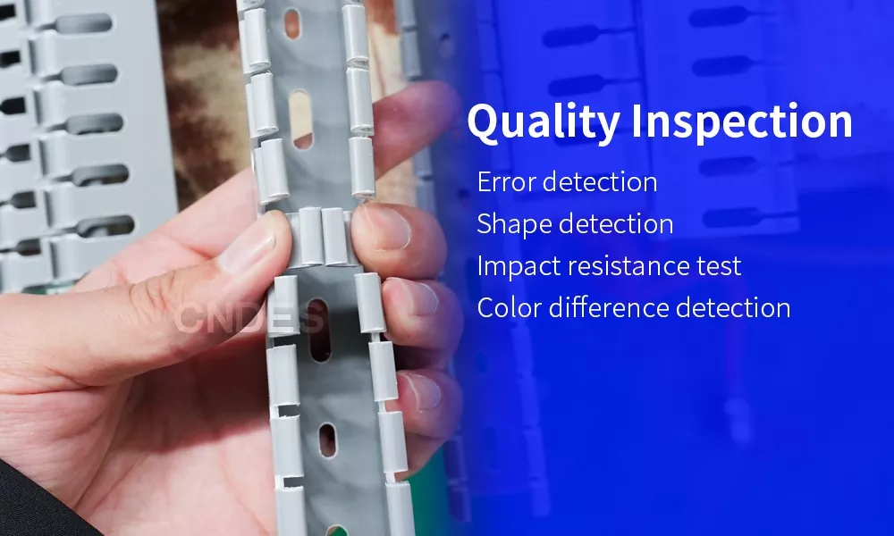 Pemeriksaan kualitas berstandar tinggi sangat penting untuk menghasilkan produk yang baik. Di CNDES, upaya kami untuk mencapai kualitas tidak ada habisnya. Kami berusaha sekuat tenaga untuk menyediakan produk yang dapat diandalkan kepada pelanggan kami. Kami memiliki empat inspektur kualitas yang bekerja secara bergiliran untuk melakukan inspeksi online terhadap produk kami. Hal ini memastikan bahwa Saluran Kabel Otomatisasi PVC Berlubang Tinggi 80 Berkualitas kami berbentuk persegi, memiliki permukaan halus, memenuhi standar ketangguhan yang dapat diterima,